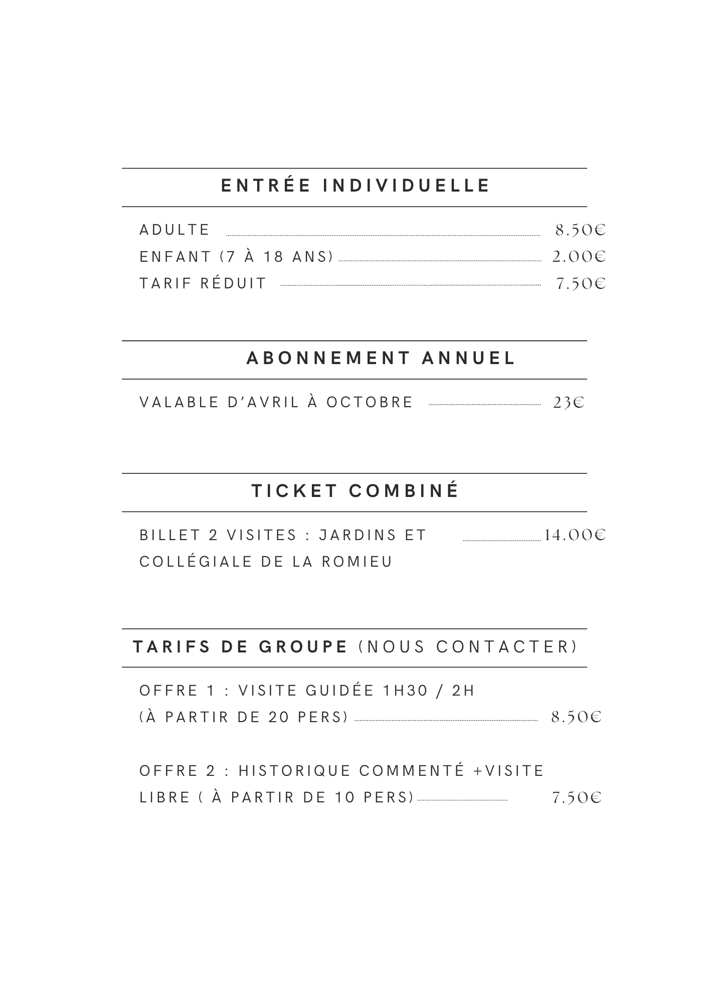 Tarifs d’entrée